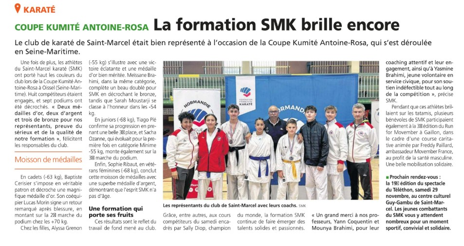 Le club de karaté de Saint-Marcel était bien représenté à l’occasion de la Coupe Kumité Antoine-Rosa, qui s’est déroulée en Seine-Maritime.